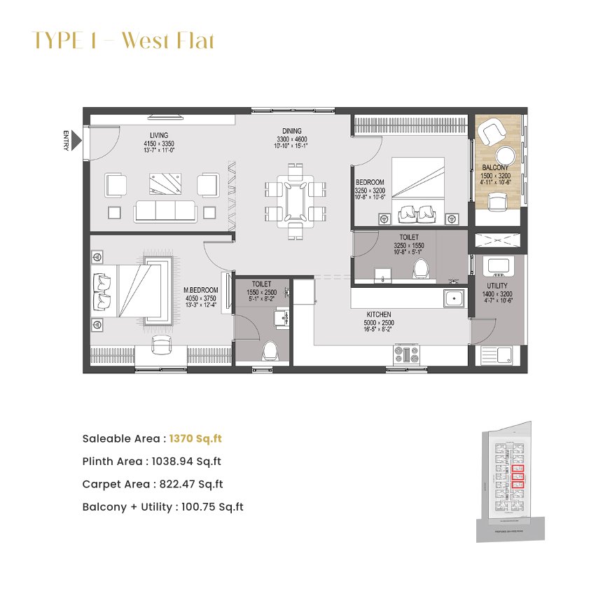 2 BHK (1370 Sq. Ft.) – Ideal for young families and professionals, featuring spacious bedrooms, a modern kitchen, and a cozy balcony with a scenic view.